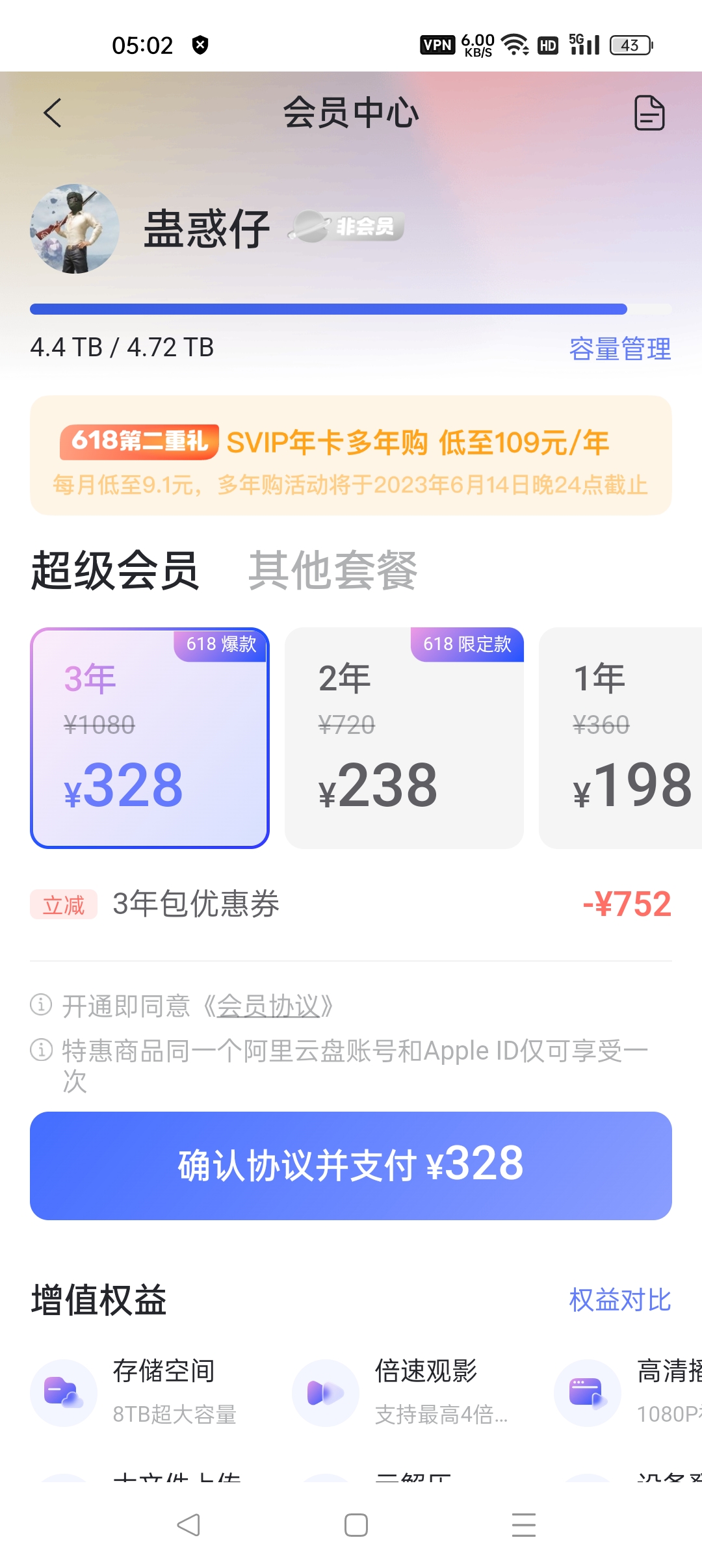 虎谷 发表于 2023-6-12 05:48 阿里云你开不开会员只要高速下载几分钟后就限速了,这个价格买的是硬盘容量 ...