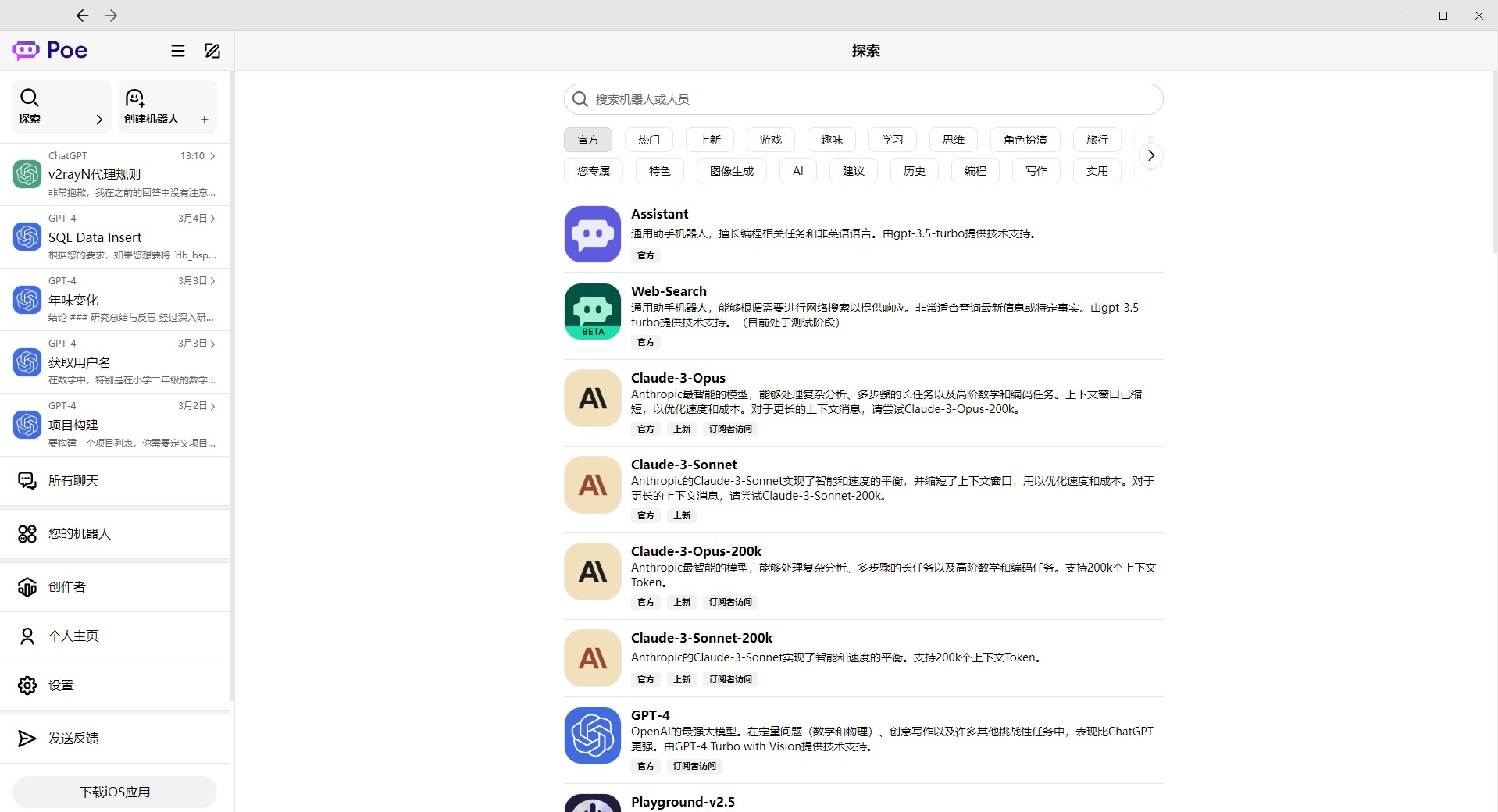 ls2829373 发表于 2024-3-5 15:00 这里发现POE的官方还是 可以的。速度是真快。目前接口 比GPT-4 贵一倍