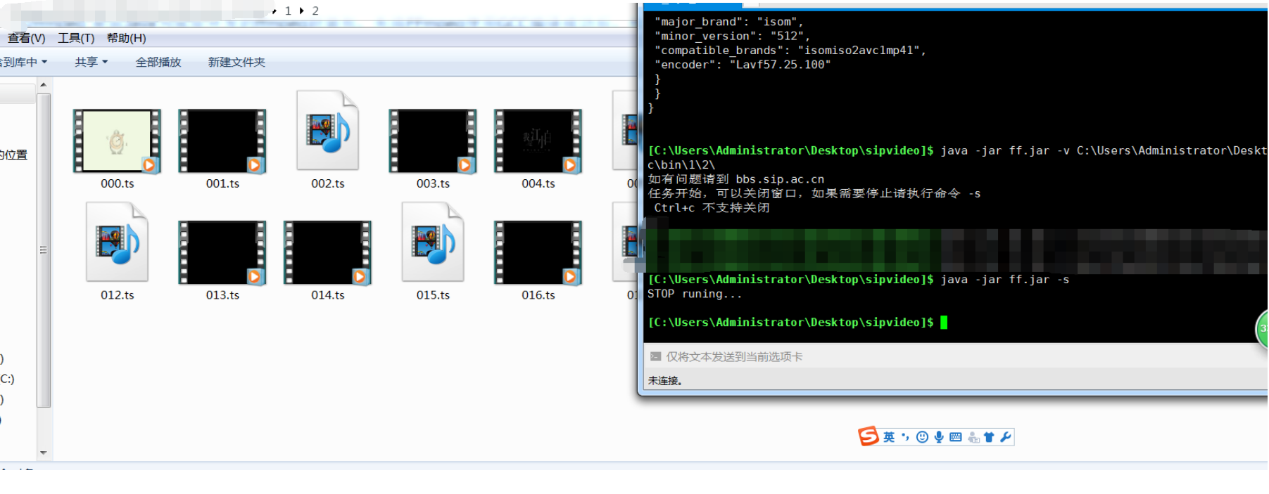 钱多多 发表于 2018-5-3 23:03 ffmpeg -i out.mp4 -c copy -bsf h264_mp4toannexb output.ts ffmpeg -i output.ts -c copy -map 0 -f se ...