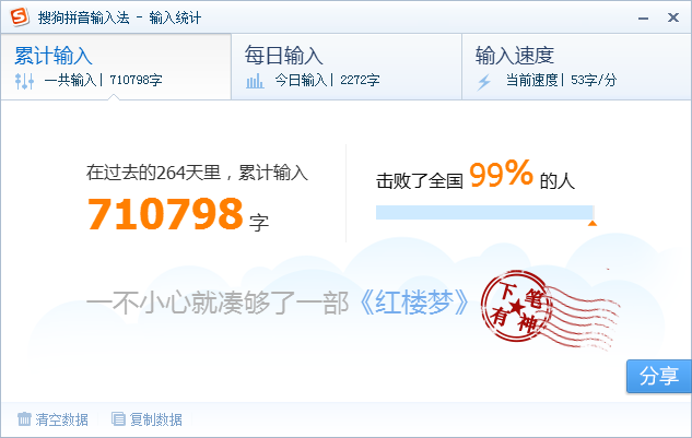 guoguomiao 发表于 2018-9-7 22:15 ……以前玩cs起源的时候 搜狗输入**切出来。但是不影响游戏 然后统计出200+字一分钟。。。差不多就是呜呜呜 ...
