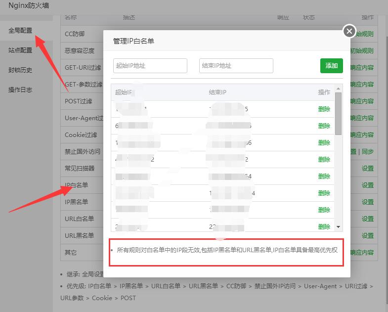 cheshirex 发表于 2018-12-24 14:47 IP白名单就在付费插件的nginx防火墙里,详细网站设置里是没有IP白名单的,看我图第二张。 ...