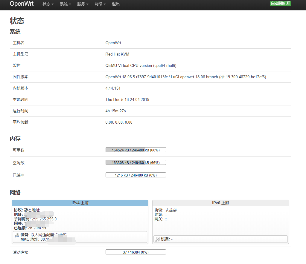 这是今天5刀256m小鸡装完v2之后空载状况