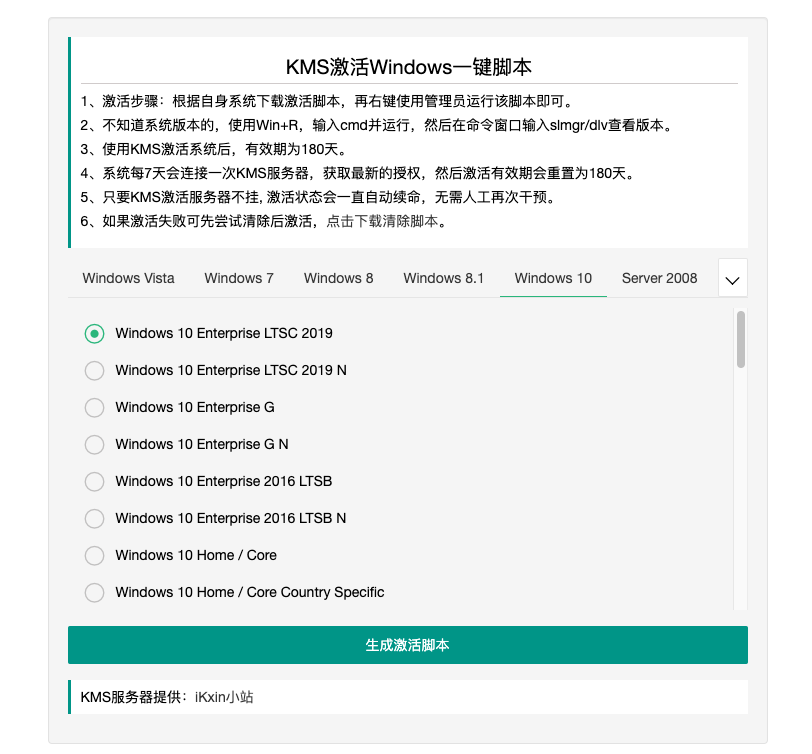 【开源】KMS激活Windows在线生成一键激活脚本 |